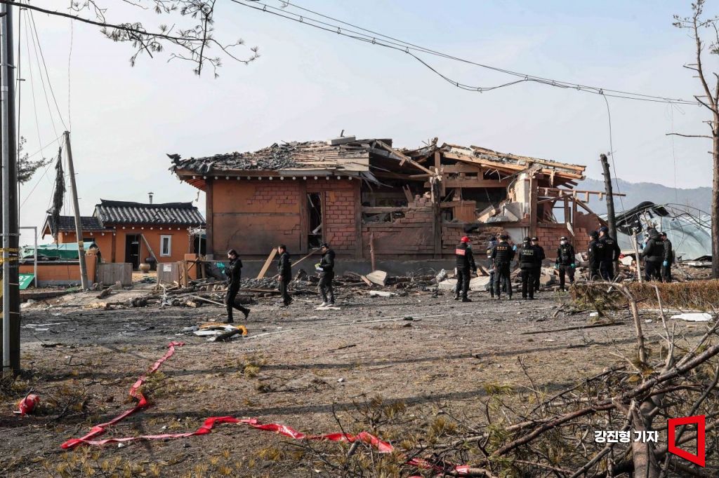 포천 승진훈련장에서 열린 한미연합훈련 중 포탄이 민가에 떨어져 인명 피해가 발생한 가운데 7일 경기 포천 이동면 노곡리 민가에서 합동감식반이 현장감식을 하고 있다. 2025.3.7. 강진형 기자