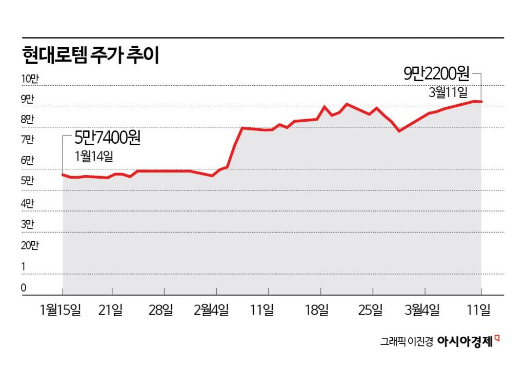 12일 한국거래소에 따르면 현대로템은 전날 9만2200원에 거래를 마쳤다. 올해 들어서만 76% 넘는 상승세를 기록했다.