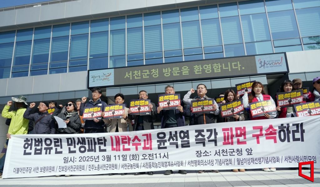 이날 서천군청 앞에서 열린 공동 시국선언에는 더불어민주당보령서천지역위원회, 진보당서천군위원회, 민주노총서천군위원회, 서천군농민회, 서천동학농민혁명계승사업회, 서천평화의소녀상기념사업회, 월남이상재선생기념사업회, 서천사랑시민모임, 윤석열퇴진서천군운동본부, 정의당 보령서천지역위원회 등이 참여했다.