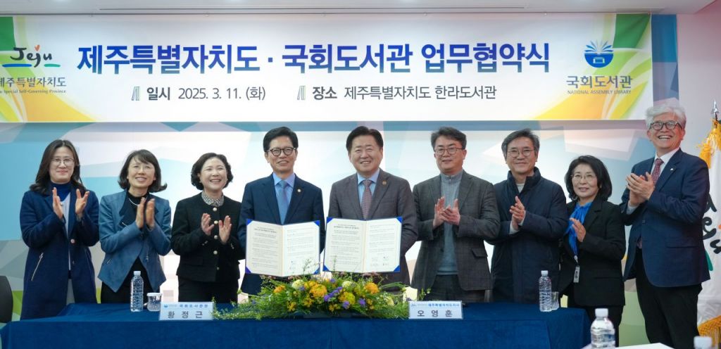 제주도는 11일 오후 2시 한라도서관에서 국회도서관과 국회 의정 정보 제공 및 상호 협력을 위한 업무협약을 체결했다.
