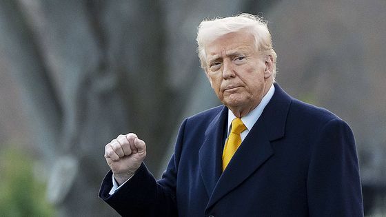 도널드 트럼프 미국 대통령이 7일(현지시간) 워싱턴 DC 백악관에서 전용기에 오르기 전 취재진을 향해 주먹을 쥐어 보이고 있다. AP 연합뉴스