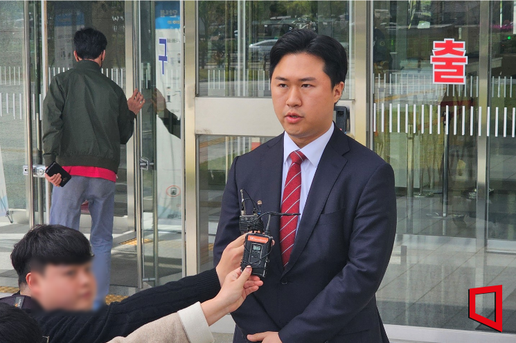 지민규 의원이 지난해 1심 판결 직후 대전지법 천안지원 정문 앞에서 "더 성실한 의정 활동으로 이번 일을 만회하도록 할 것"이라고 말하는 모습.