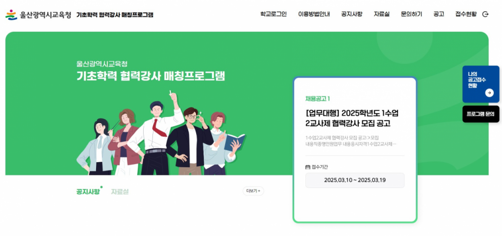 울산교육청 ‘협력강사 매칭 시스템’ 메인 화면.