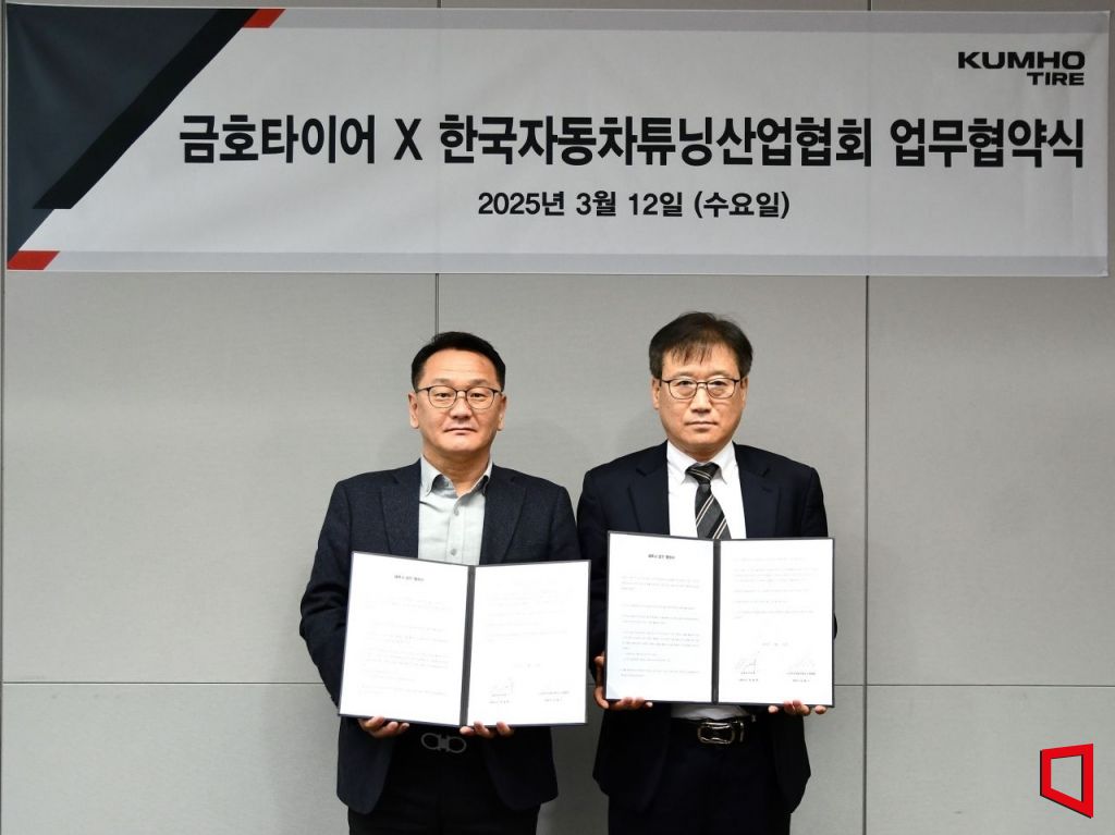 금호타이어는 12일 본사에서 한국자동차튜닝산업협회와 카카오톡 기반 자동차 튜닝 전문 플랫폼에 입점하기 위한 업무협약을 체결했다고 13일 밝혔다.