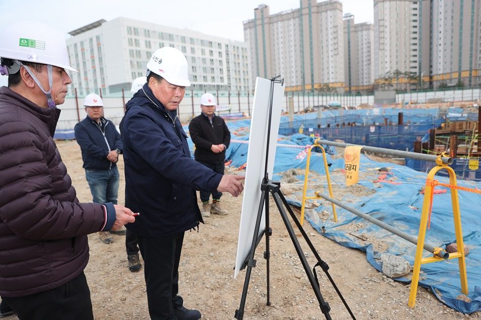 김 군수는 현장을 둘러보며 지반 침하 여부, 흙막이 시설, 계측기 설치 상태 등을 꼼꼼히 점검했다. 또한, 최근 건설 현장에서 화재 사고가 잇따라 발생함에 따라 화재 위험 요소를 점검하고, 관계자들에게 화재 예방 및 초기 대응 방안을 강조했다.
