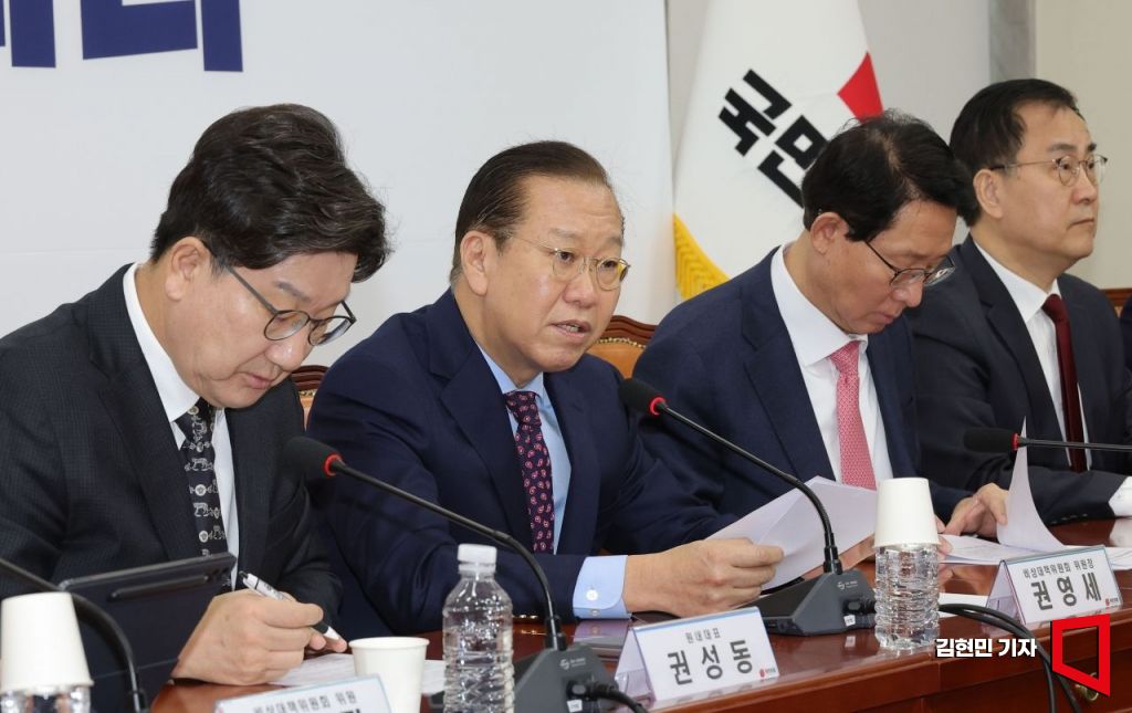 권영세 국민의힘 비상대책위원장이 13일 국회에서 열린 비상대책위원회의에서 발언하고 있다.