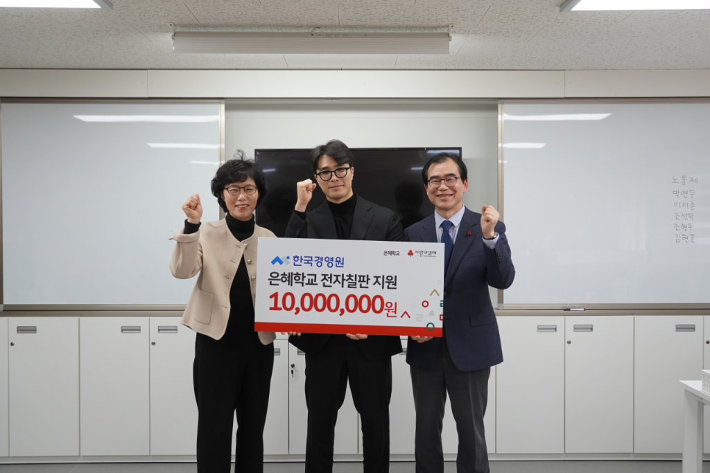 지난 12일 오후 은혜학교에서 진행된 전달식에는 ㈜한국경영원 김태균 이사와 박흥철 광주사회복지공동모금회 사무처장, 최옥순 광주광역시 은혜학교장 및 관계자들이 참석했다. 해당 사업비는 은혜학교 전자칠판 교체 비용으로 사용될 예정이다.