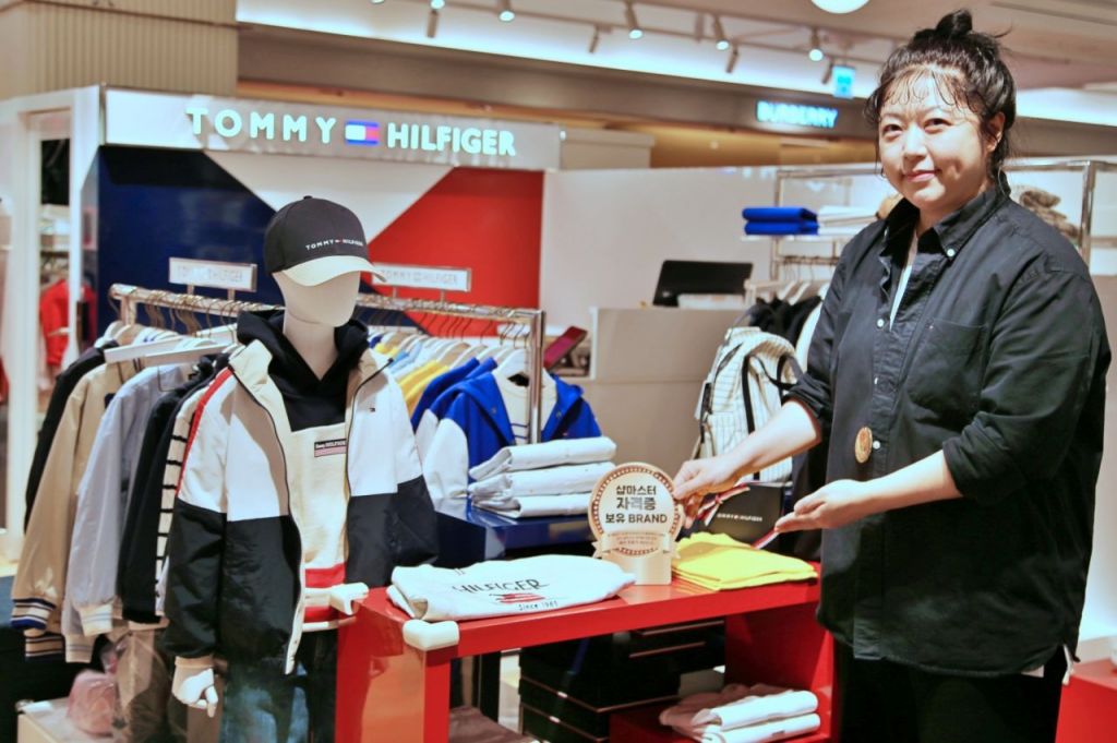 광주신세계, 본관 6층 타미힐피거 칠드런 매장에서 직원이 샵마스터 자격증 보유 브랜드 안내물을 선보이고 있다.광주신세계 제공
