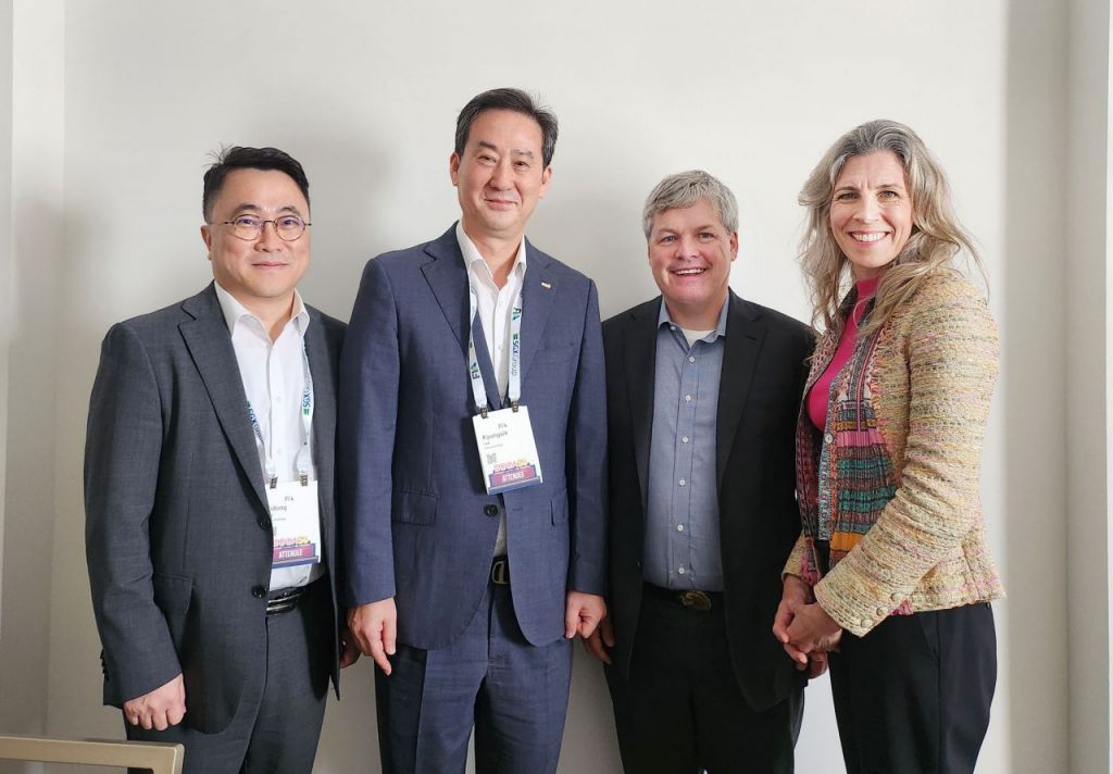 10일~12일(현지시간) 미국 보라카톤에서 열린 FIA 국제 파생상품 컨퍼런스에 참가한 이경식 한국거래소 파생상품시장본부장(왼쪽에서 두번째)과 제니퍼 일큐 인터콘티넨털익스체인지(ICE) 최고경영자(오른쪽 첫번째)의 모습. 한국거래소 제공