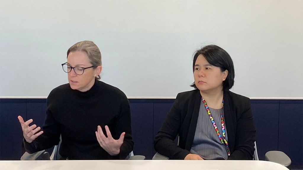 앨리스 프랜드 AI 및 신흥 기술 정책 총괄(왼쪽)과 유니스 황 아시아태평양 지역 AI 및 신흥 기술 정책 담당이 13일 오전 서울 강남구 구글코리아 사옥에서 진행된 기자간담회에서 발언하고 있다. 구글코리아 제공