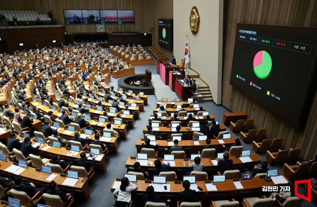 13일 국회 본회의에서 상법 일부개정법률안이 통과되고 있다. 상법 개정안은 이사가 충실해야 하는 대상을 기존의 '회사'에서 '회사 및 주주'로 넓히고, 상장 회사의 전자 주주총회 도입을 의무화하는 조항 등을 담고 있다.