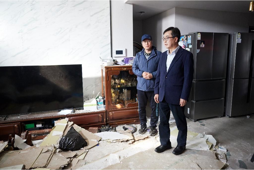김 지사는 포천 노곡리 오폭사고 피해자 지원에 대해서는 "앞으로도 일상 회복 지원금이라던지, 재난위로금, 재난구호 응급복구비 등 차질 없이 진행하겠다는 계획을 주민들께 말씀드렸다"며 "이 외에도 집이 전파되거나 거주하기 어려운 분들에 대한 조치, 또 부상자들을 위한 비상대책반, 도로의 재포장 문제 등 차질 없이 진행하겠다"고 약속했다.