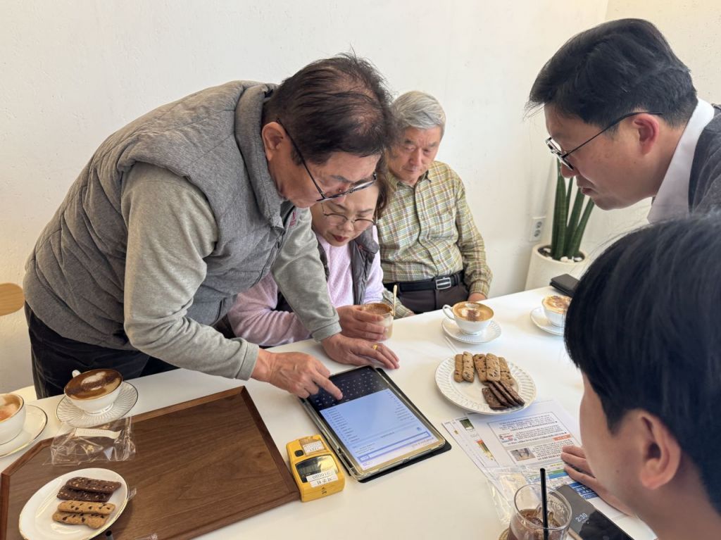 11일 경주시 감포읍 감포2리를 방문해 지역주민들을 대상으로 '알기쉬운 방사선 계산기'에 대해 테스트 버전을 시연하고 있다. 한수원 월성본부 제공