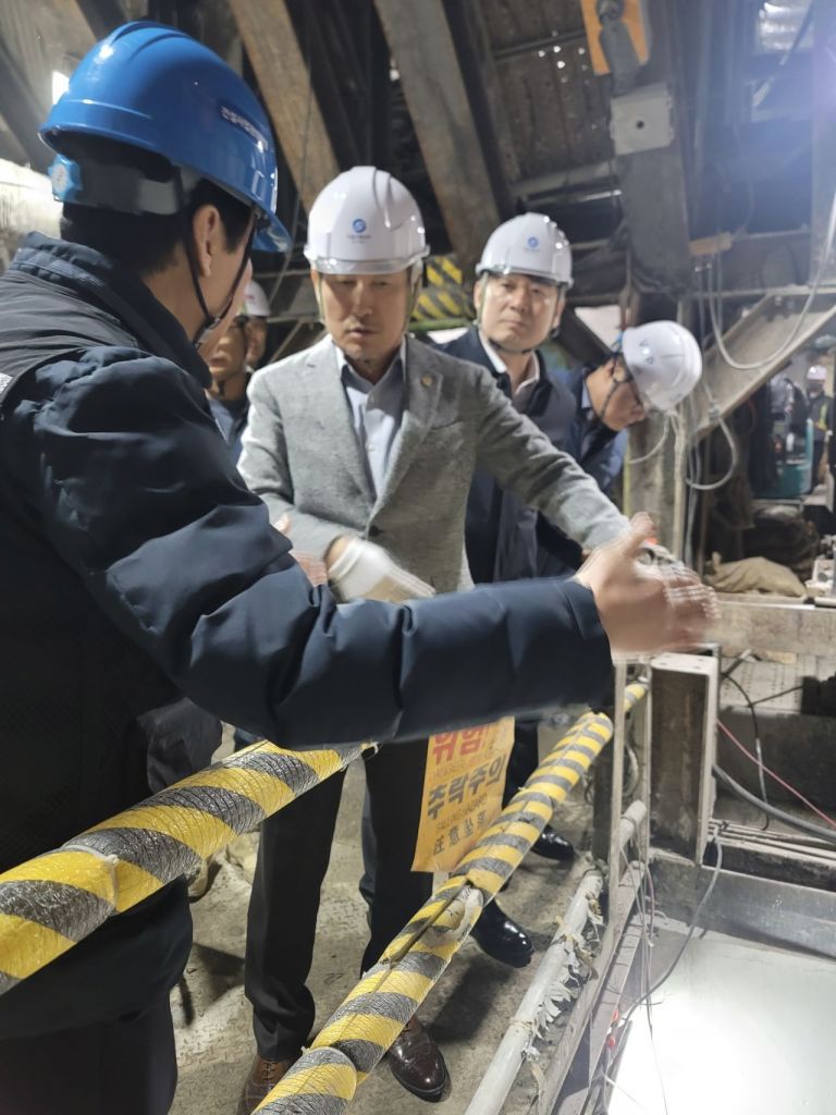현장을 둘러본 백호 사장은 암반 제거로 지연된 공사 기간을 단축하기 위해 무리한 공사를 진행하면 안전사고가 발생할 우려가 있다며, 남은 기간 안전에 각별히 신경 쓰며 공사를 완료해 달라고 당부했다.