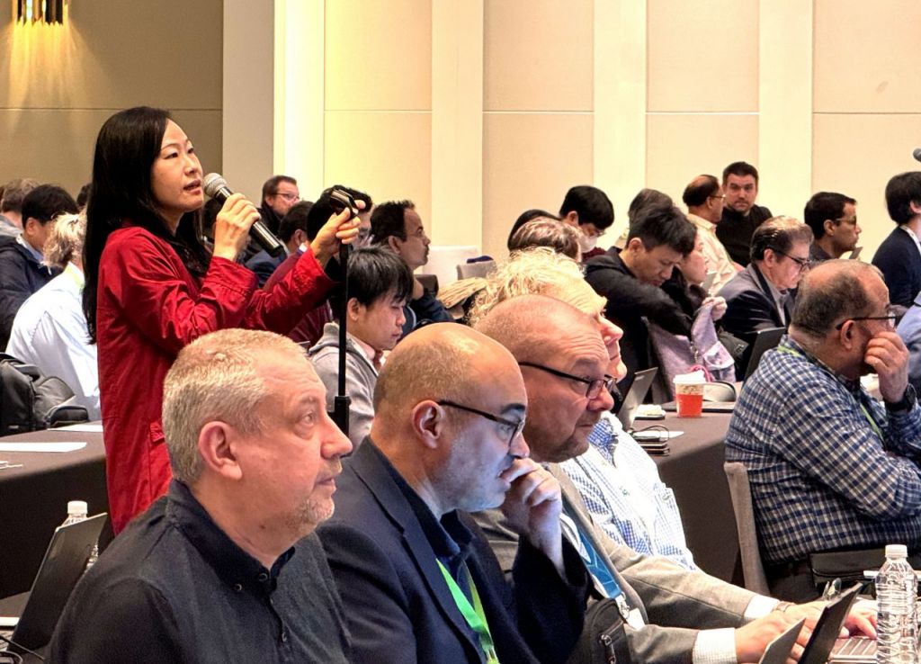 LG전자 최고기술책임자(CTO) C&M표준연구소 김래영 책임연구원이 글로벌 이동통신 표준단체 '3GPP'의 SA 총회에서 발표하고 있다. LG전자 제공