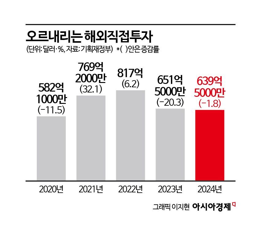 기재부 관계자는 "코로나19 이후 반도체, 자동차 등을 중심으로 미국에 현지 생산시설을 많이 만들다 보니 2023년까지 관련 투자가 크게 늘었다"며 "지난해에도 투자가 계속 늘긴 했지만 기저효과로 (미국 투자액이) 감소한 것"이라고 설명했다. 이어 "지난해 제조업 투자액이 줄어든 것도 그 영향"이라고 덧붙였다.