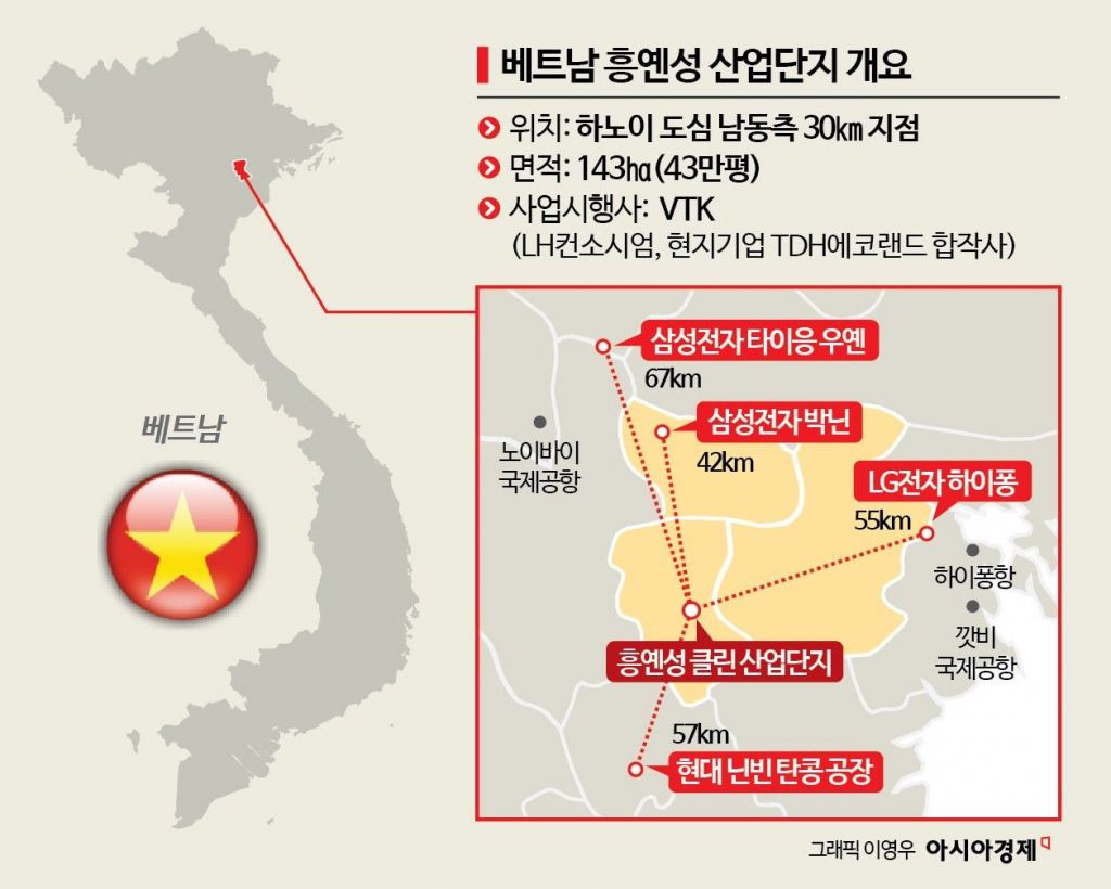 이번에 조성된 산업단지는 베트남 북부지역 경제권의 요충지로 떠오른 곳이다. 한국토지주택공사(LH)를 중심으로 한 국내 공공기관 컨소시엄이 사업시행사로 참여해 해외 진출의 불확실성을 덜어준다는 장점이 있다.