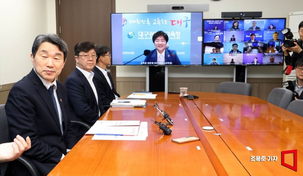 이주호 사회부총리 겸 교육부 장관 14일 서울 종로구 정부서울청사에서 열린 시도교육감 영상간담회에 참석, 초중교 사교육비 조사 관련 발언을 하고 있다.