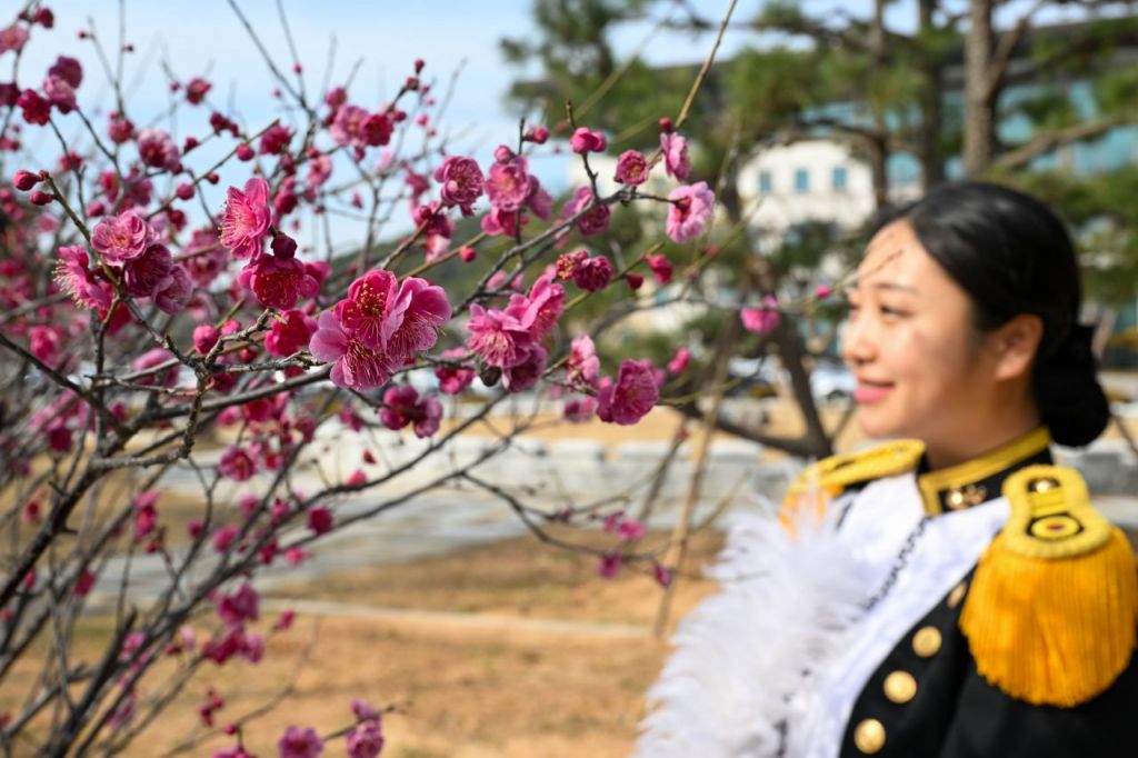 경남 창원시 진해구 해군사관학교에 봄의 전령사라 불리는 ‘홍매화’가 활짝 피며 봄의 시작을 알리고 있다.