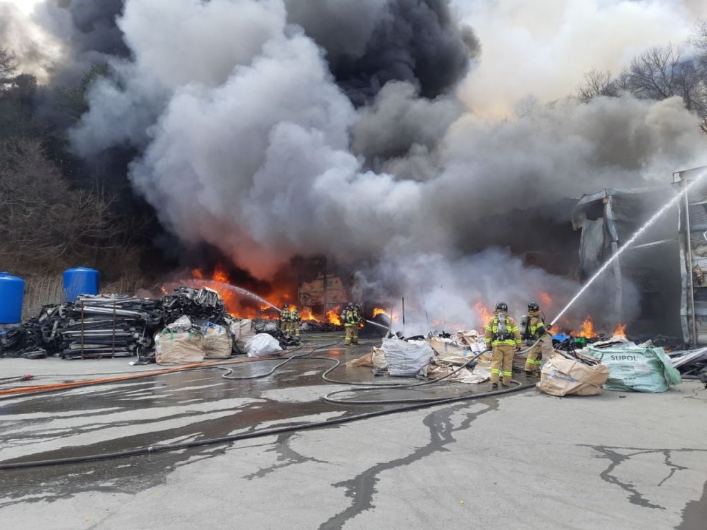 14일 낮 12시 29분쯤 경기 파주시 법원읍 응담리의 플라스틱 제조 공장에서 불이 났다.