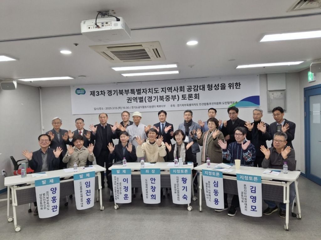 경기도와 경기북부특별자치도 설치 민관합동추진위원회 도민협력분과(위원장 김규봉)는 지난 13일 의정부시 소재 경기도공익활동지원센터에서 경기북중부 지역 시민사회단체와 경기북부특별자치도 설치를 위한 토론회를 개최했다고 14일 밝혔다.