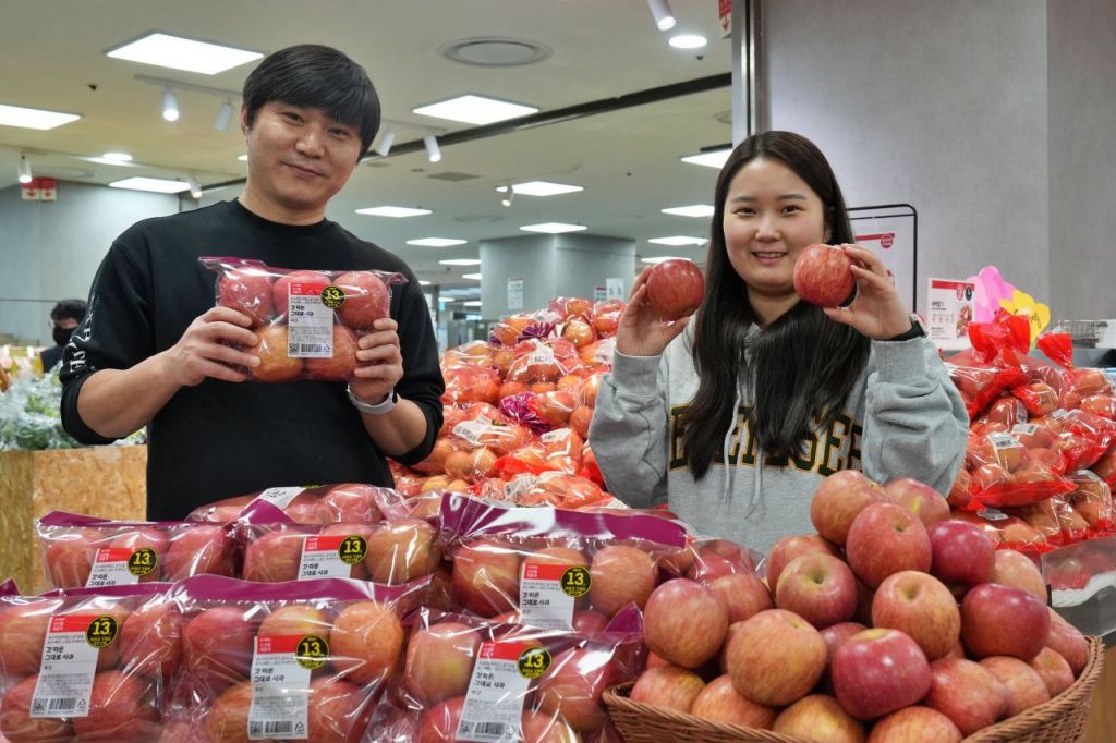 19일부터 '갓따온 그대로 사과(4~6입/봉/국산)'는 1만7990원에, '갓 수확한 그대로 단단한 CA 저장 양파(1.5㎏/망/국산)'는 5990원에 판매한다.