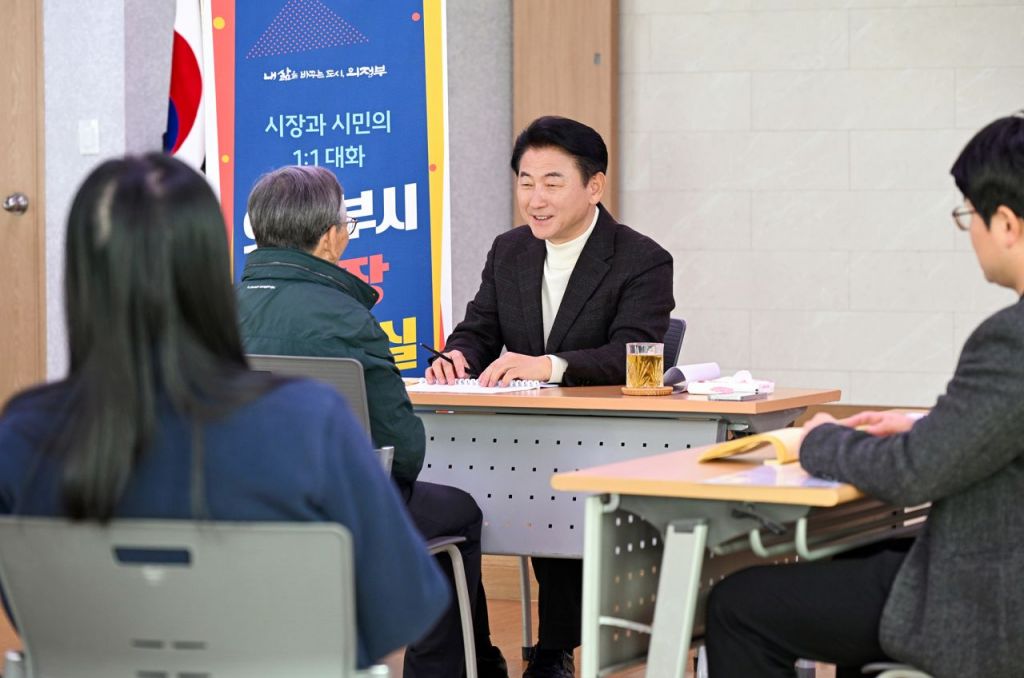 김동근 시장이 지난 14일 ‘현장시장실’을 열고 시민들과 소통하고 있다. 의정부시 제공
