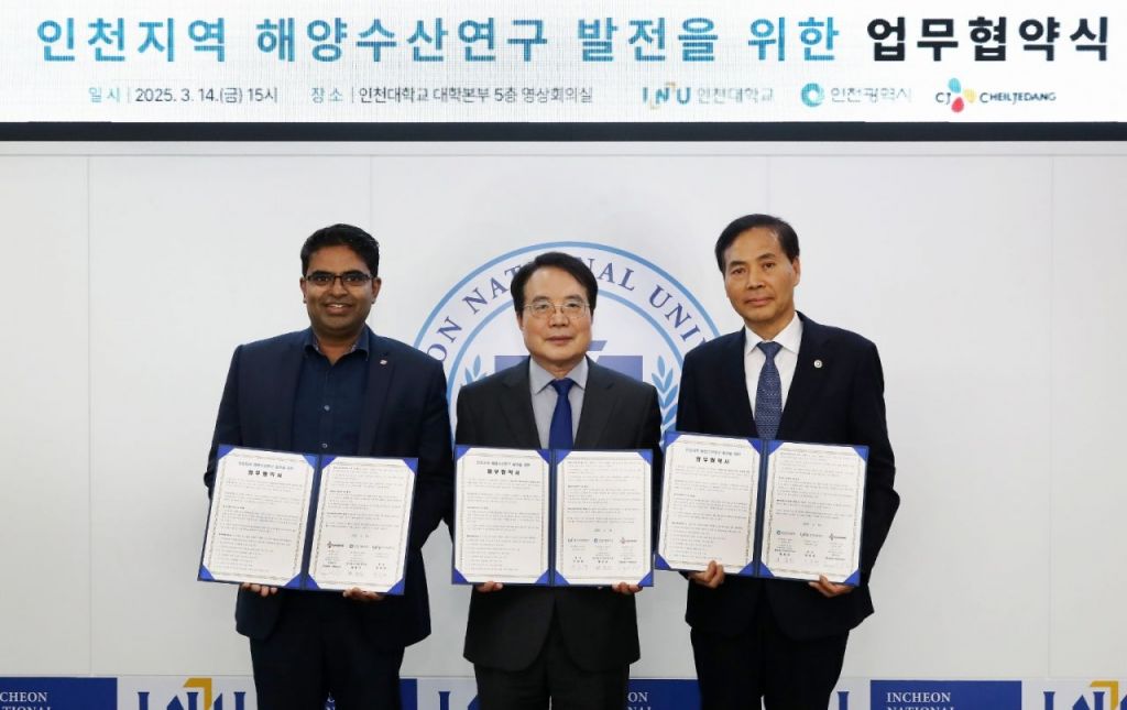 CJ제일제당이 인천시(인천수산자원연구소)·인천대학교와 '인천지역 해양수산연구 발전을 위한 업무협약(MOU)'을 체결했다고 16일 밝혔다.