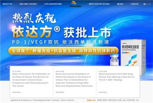 중국 제약사 아케소는 새 면역치료제 이보네스시밉이 임상 3상 시험에서 투약 환자의 절반이 무진행 생존기간(PFS·증상 악화를 겪지 않는 기간) 중앙값 11.1개월을 기록했다고 의학 학술지 랜싯을 통해 밝혔다. 세계에서 가장 많이 쓰이는 암 치료제 미국 머크의 키트루다 PFS 중앙값 5.8개월을 뛰어넘는 수치다.