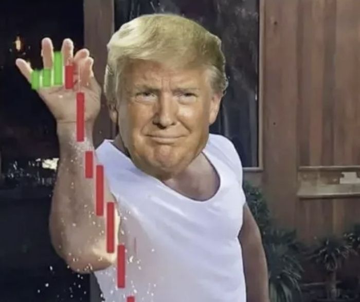 도널드 트럼프 2기 행정부 출범 이후 관세 정책에 따른 주가 폭락을 풍자한 합성 사진. 엑스(X·옛 트위터) 캡처