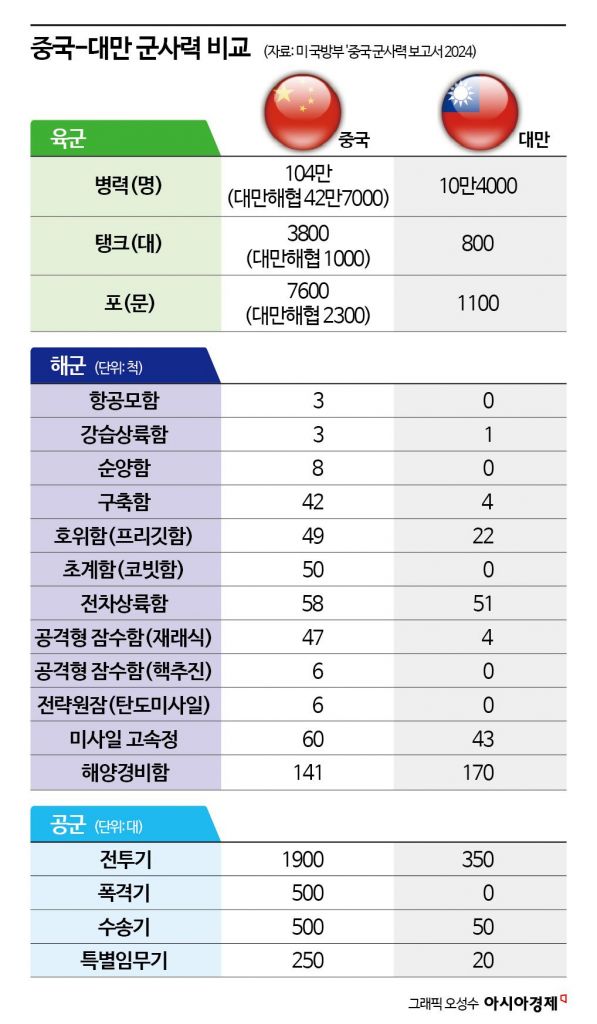 중국의 위협에 맞서 지난 3년 동안 대만 정부는 국민의 지지를 바탕으로 국방력을 강화해왔다. 2022년 2월 러시아 침공 이후 3년간 힘겨운 싸움을 지속해 온 우크라이나는 대만의 중요한 참고 사례가 됐다. 대만은 방위비를 매년 증액해 국내총생산(GDP)의 2.5%를 국방비로 사용한다. 라이칭더 총통도 최근 이를 3%까지 확대하겠다고 공약했다. 다만, 미국은 이마저도 마땅치 않다는 눈치다. 엘브리지 콜비 미 국방부 정책담당 차관 지명자는 상원 청문회에서 이 비율을 10%까지 높여야 한다고 주장했다. 이는 대만의 방위비 분담을 늘려야 한다는 트럼프 대통령의 주장과 맞닿아있다.