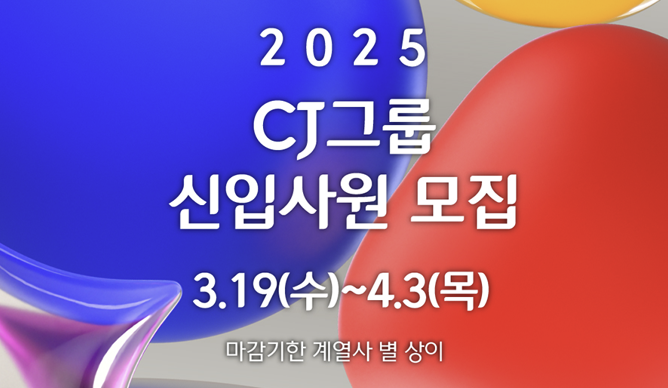 CJ그룹은 19일부터 CJ제일제당, CJ대한통운, CJ ENM, CJ올리브영, CJ올리브네트웍스 등 주요 계열사를 포함한 '2025년 상반기 신입사원 채용'을 시작한다고 17일 밝혔다.