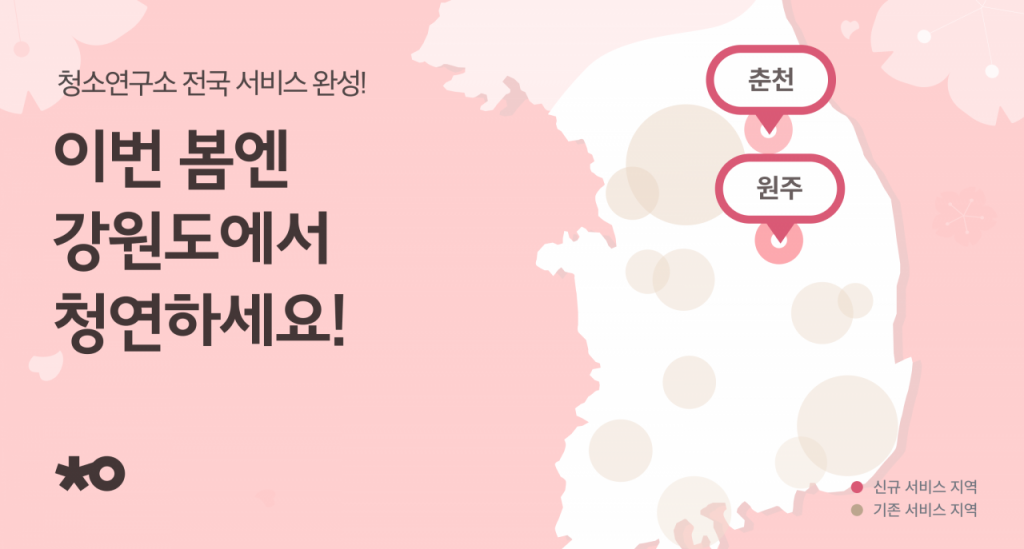 춘천과 원주는 강원도의 대표적인 거점 도시이며, 최근 대규모 아파트 단지 개발 및 유입 인구 증가로 인해 생활 서비스 수요가 지속적으로 확대되고 있다. 이에 청소연구소는 두 지역에서 처음 서비스를 시작, 향후 고객의 수요와 매니저 공급 상황을 고려해 지역을 점차 확장할 예정이다.