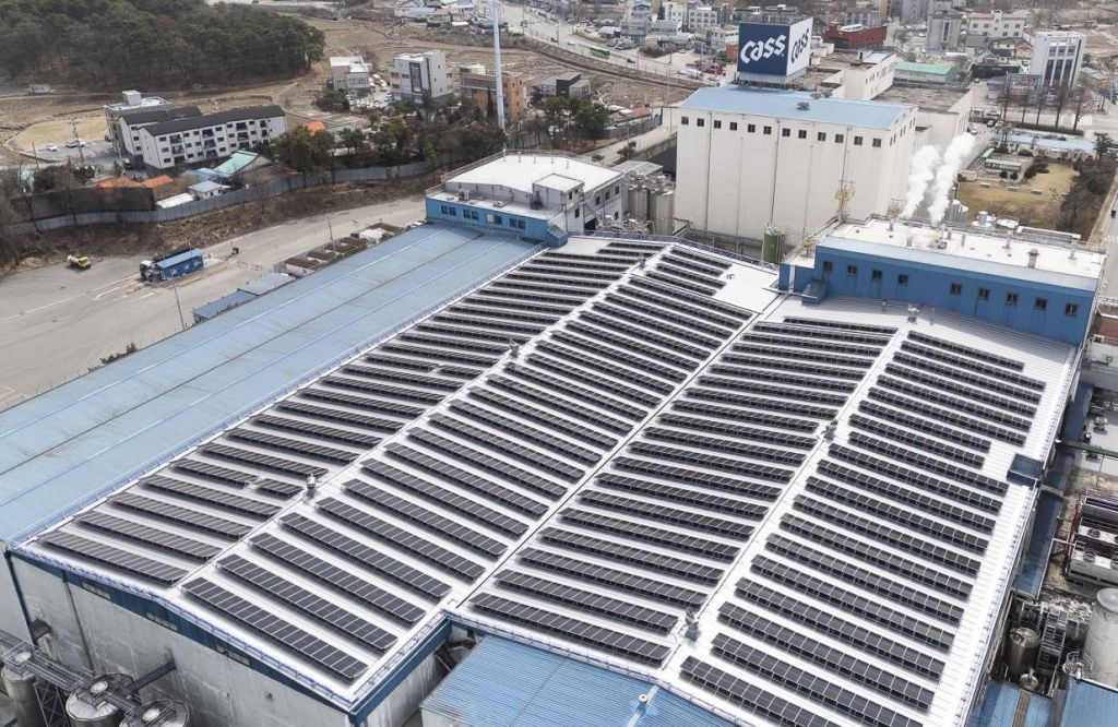 오비맥주 이천공장에 설치된 태양광 발전 설비.