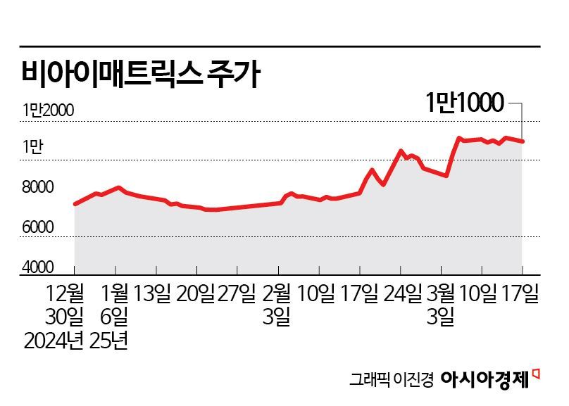 18일 금융투자업계에 따르면 비아이매트릭스는 올해 들어 41.2% 올랐다. 같은 기간 코스닥 지수가 9.6% 오른 것을 고려해도 시장 대비 수익률은 31.6%포인트(P)에 달한다.