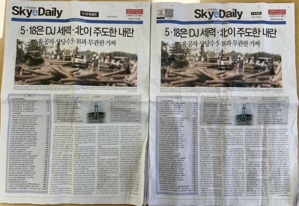 스카이데일리가 5·18민주화운동을 왜곡·폄훼하는 내용을 보도한 신문. 5·18기념재단 제공