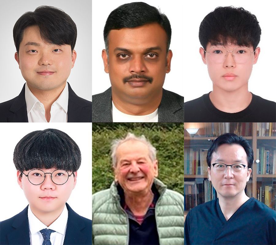 임해균 교수 연구팀. (위 왼쪽부터) 임해균 교수, Badrinathan Sridharan 박사, 박진형 석사과정생. (아래 왼쪽부터) 김대훈 박사과정생, Jean?Claude Vial 교수, 김광석 교수. 국립부경대 제공