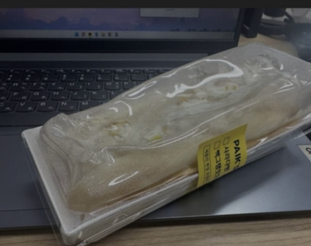 한 온라인 커뮤니티에 빽다방에서 플라스틱(PET) 용기에 담긴 빵을 전자레인지에 돌려 제공했다는 내용의 글이 올라왔다. 온라인 커뮤니티 캡처.
