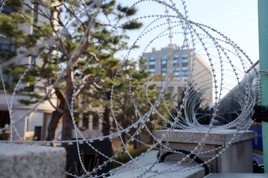 탄핵 찬반파의 갈등이 첨예화 하면서 헌법재판소 담장 위에 철조망이 설치됐다. 사진=윤동주 기자