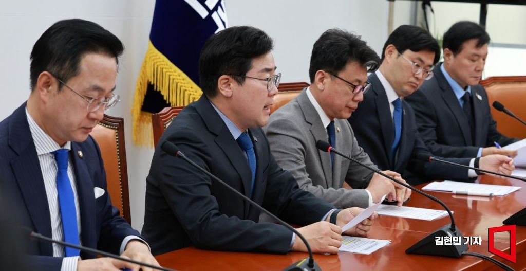박찬대 더불어민주당 원내대표가 18일 국회에서 열린 원내대책회의에서 발언하고 있다.