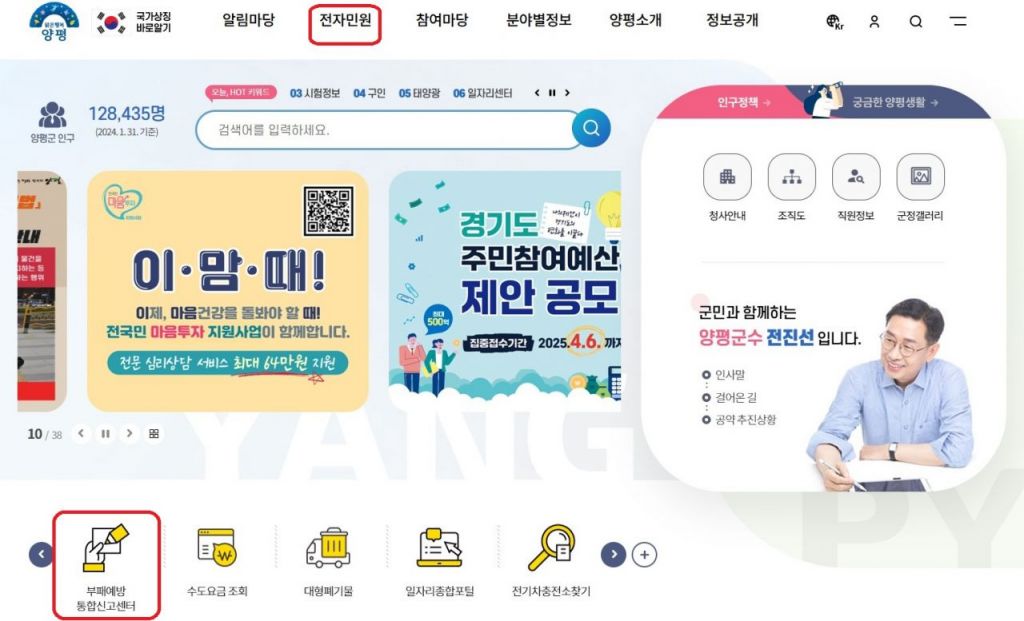 양평군홈페이지(부패예방 통합신고센터). 양평군 제공
