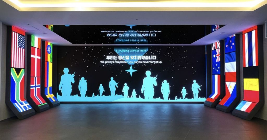 유엔평화기념관 '동맹의 벽'에 3면 LED월이 설치되었다. 유엔평화기념관 제공.