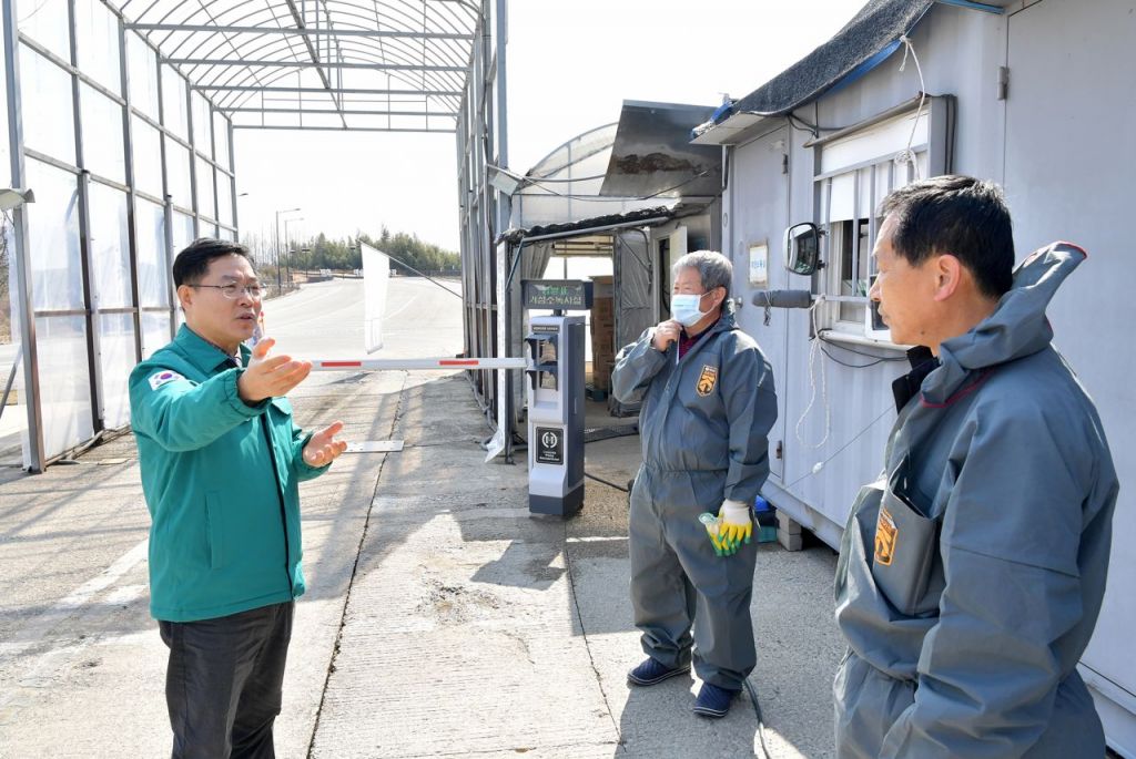 전남지역에 구제역이 확산하고 있는 가운데 정광선 담양군수 권한대행이 지난 17일 거점 소독시설을 방문, 차단방역에 최선을 다해줄 것을 당부했다. 담양군 제공