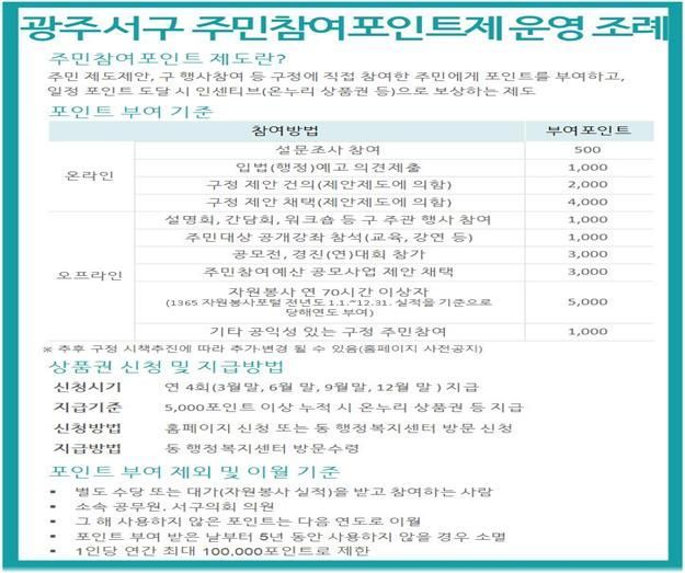 광주광역시 서구 주민참여포인트제 조례. 서구의회 제공