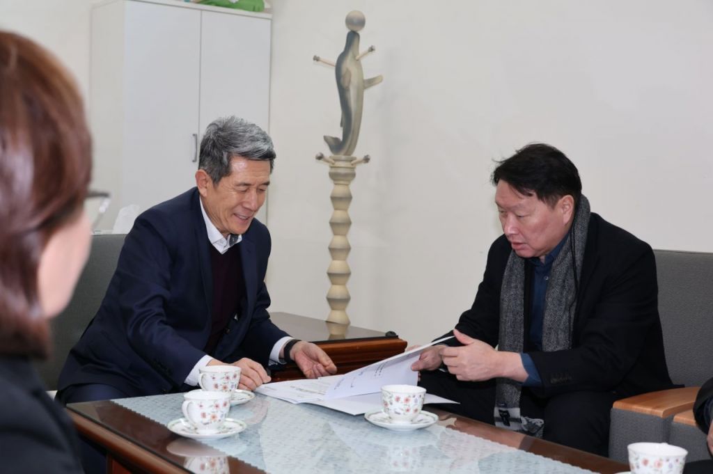 이강덕 시장은 북방경제를 선도하고 있는 포항시의 역할을 강조하고 지역 활성화를 위한 기업의 적극적인 투자를 최 회장에 건의했다.