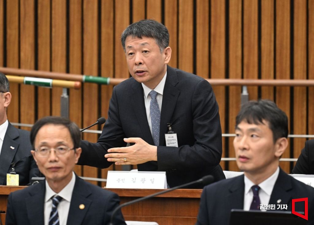 18일 국회에서 열린 정무위 전체회의 홈플러스·MBK 파트너스 및 삼부토건 관련 긴급 현안질의에서 김광일MBK 파트너스 부회장 겸 홈플러스 공동 대표가 의원들의 질의에 답하고 있다. 2025.3.18 김현민 기자