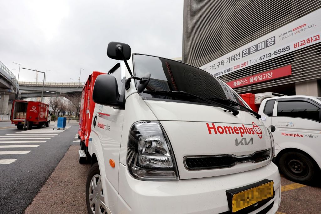 서울의 한 홈플러스 매장에 배송 차량이 주차되어 있다. 연합뉴스