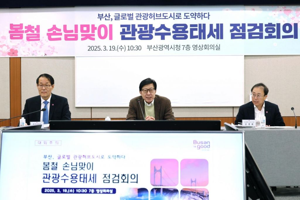 부산시(시장 박형준)는 본격적인 봄 관광 시즌을 맞아 19일 오전 10시 30분 시청 영상회의실에서 시장 주재로 ‘봄철 손님맞이 관광수용태세 점검회의’를 진행했다고 알렸다.