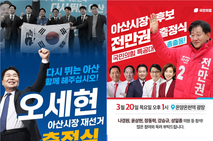왼쪽부터 민주당 오세현, 국힘 전만권 출정식 포스터.(각 후보 SNS 갈무리)