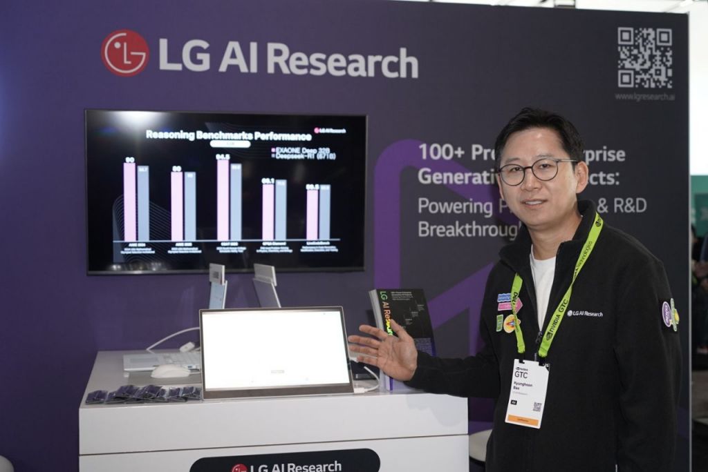 배경훈 LG AI연구원장은 18일(현지시간) 미국 새너제이에서 열린 'GTC 2025' LG AI연구원 부스에서 국내 첫 추론 AI '엑사원 딥'을 시연했다. LG 제공